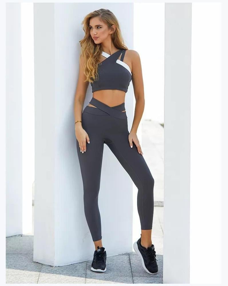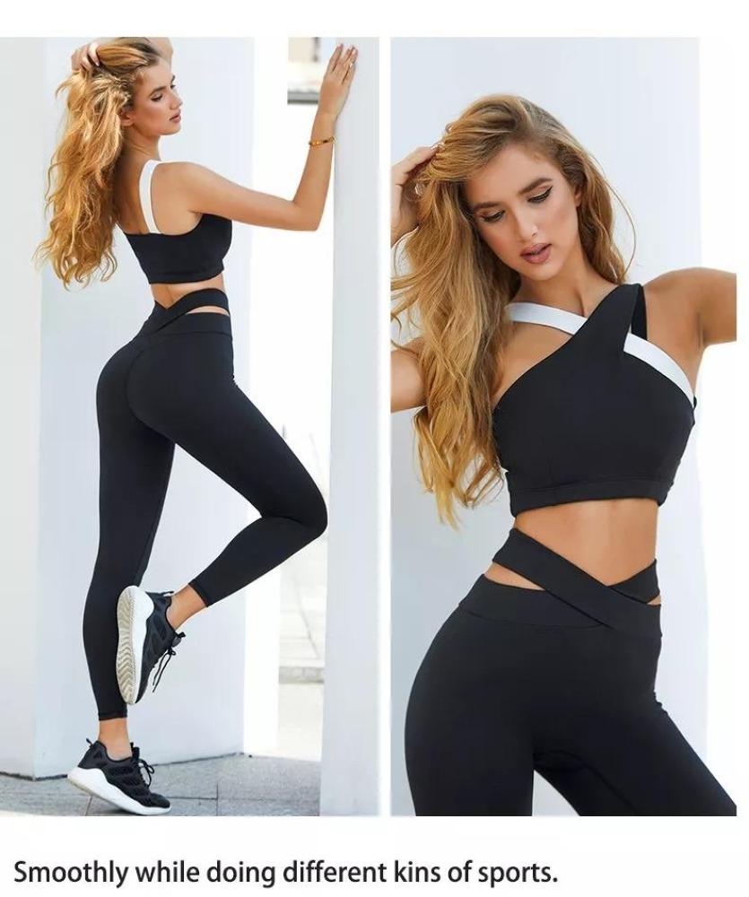 لإطلاية رياضية انثوية تخطف الأنظار أطلبي هذا الطقم الرياضي المؤلف من قطعتين حمالة صدر تتميز بتصميم متعاكس لإضافة لمسة من الرقة والنعومة للتصميم، وبنطال بطول الكاحل مزود بخصر بشكل حرف V وذلك لتحصلي على إطلالة انثوية جذابة تخطف الأنظار، يمكنك ارتدائه عند ممارسة التمارين الرياضية في المنزل أو النادي أو في المنتجعات الصحية والرياضية.