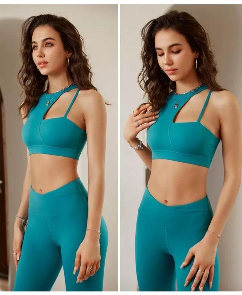 البساطة في التصميم توحي بالأناقة والفخامة لذلك سيدتي قمنا باختيار الملابس الرياضية هذه لإطلالة كلاسيكية انيقة وجذابة، حيث تتألف من قطعتين، حمالة صدر بتفاصيل ناعمة وانيقة، وبنطال بطول الكاحل بقصة ضيقة لإضافة لمسة من الجاذبية للتصميم.