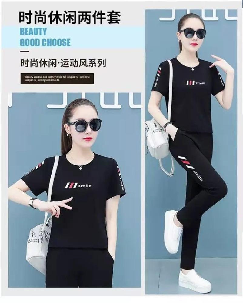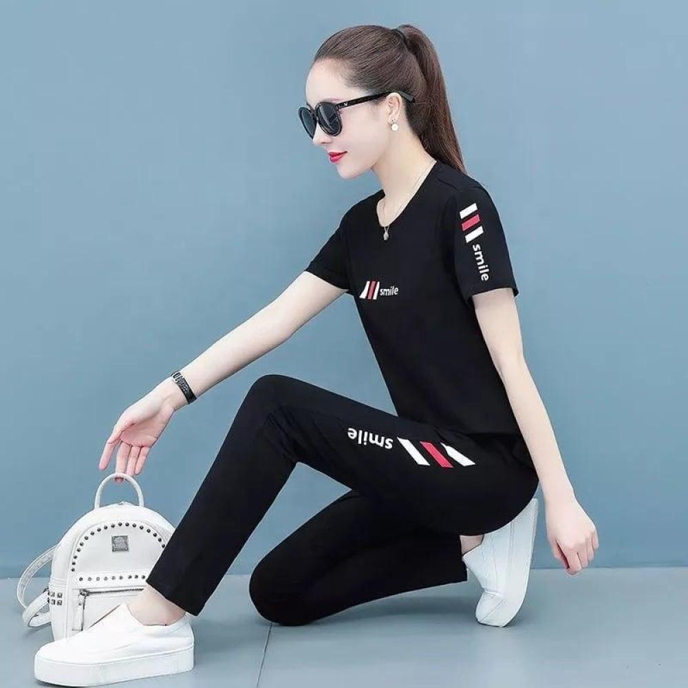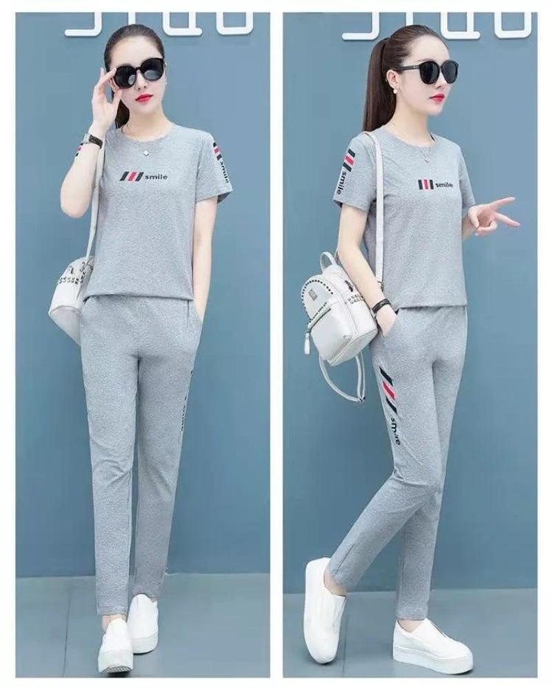 احصلي على إطلالة رياضية كلاسيكية مع هذه البيجاما المصنوعة من أجود أنواع القطن الناعم والمريح والمؤلفة من بلوزة نصف كم مصممة بقصة مستقيمة ومزودة بياقة مدورة، وبنطال بطول الكاحل بقصة مستقيمة، البيجاما مزينة بخطوط مائلة وشعار الماركة على البلوزة والأطراف الجانبية للبنطال، يمكنك ارتدائها يومياً أثناء ممارسة التمارين الرياضية كما يمكنك ارتدائها عند الذهاب للتسوق لتحصلي على إطلالة رياضية مريحة.