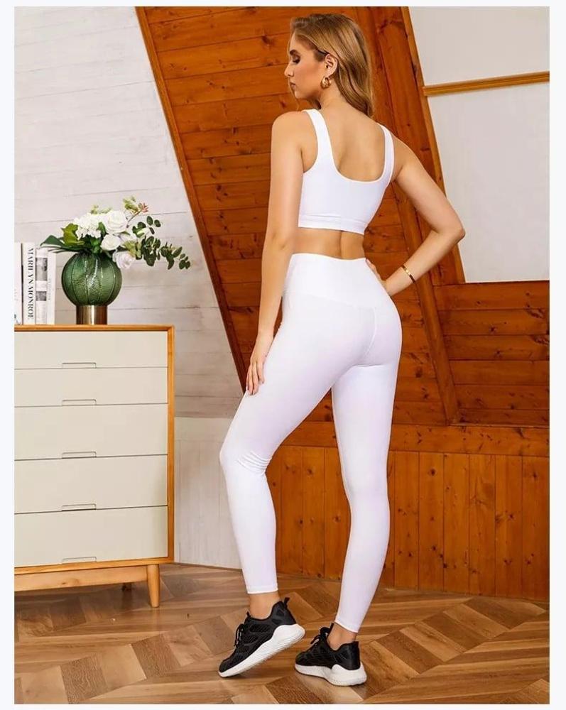 طقم رياضي نسائي بتصميم انثوي جذاب مصنوع من أجود الخامات للحصول على أعلى مستوى من الراحة أثناء ممارسة التمارين الرياضية، التصميم مزين بشريط متعاكس على الصدر وحزام البنطال بالإضافة إلى خطوط خياطة واضحة على البنطال لإضافة لمسة من التميز والأناقة للتصميم.