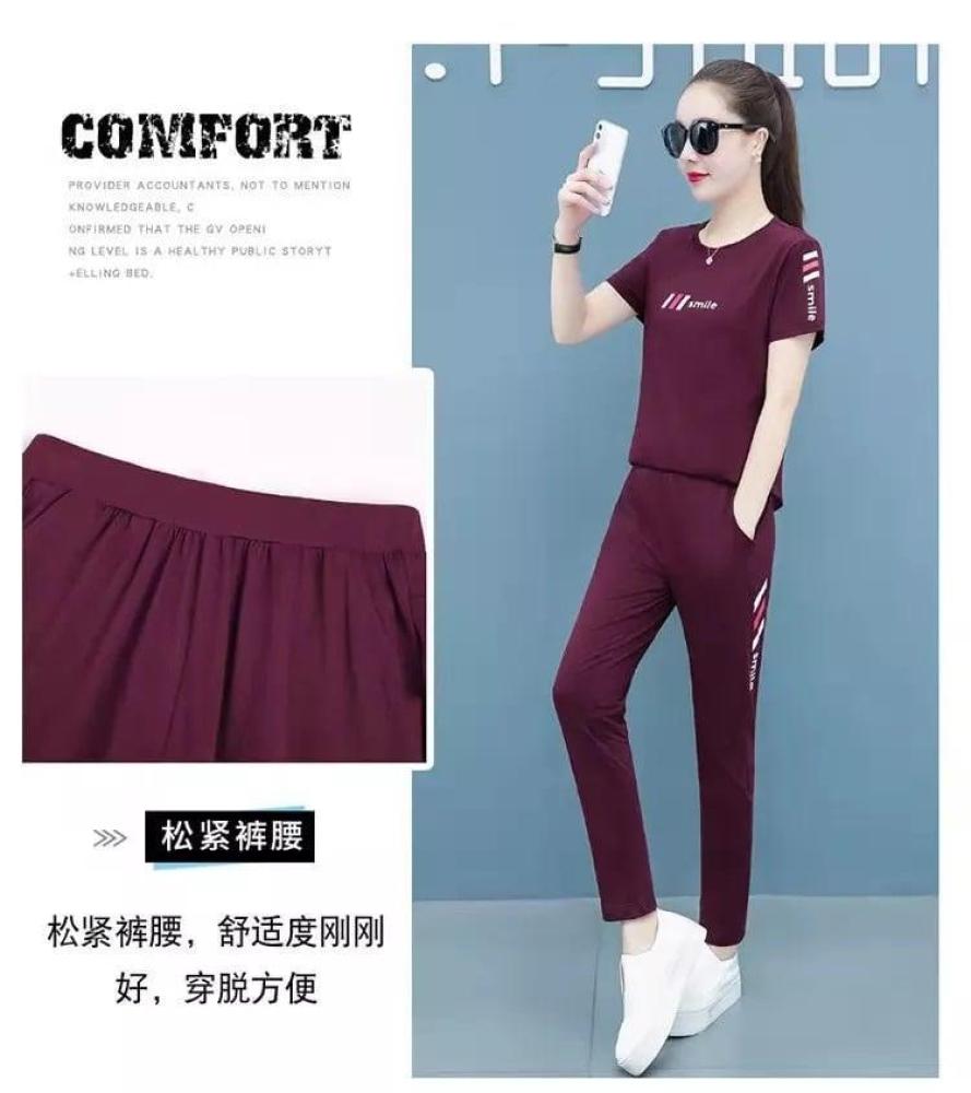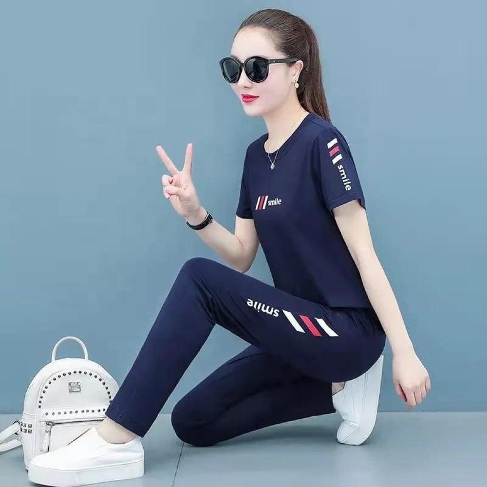 احصلي على إطلالة رياضية كلاسيكية مع هذه البيجاما المصنوعة من أجود أنواع القطن الناعم والمريح والمؤلفة من بلوزة نصف كم مصممة بقصة مستقيمة ومزودة بياقة مدورة، وبنطال بطول الكاحل بقصة مستقيمة، البيجاما مزينة بخطوط مائلة وشعار الماركة على البلوزة والأطراف الجانبية للبنطال، يمكنك ارتدائها يومياً أثناء ممارسة التمارين الرياضية كما يمكنك ارتدائها عند الذهاب للتسوق لتحصلي على إطلالة رياضية مريحة.