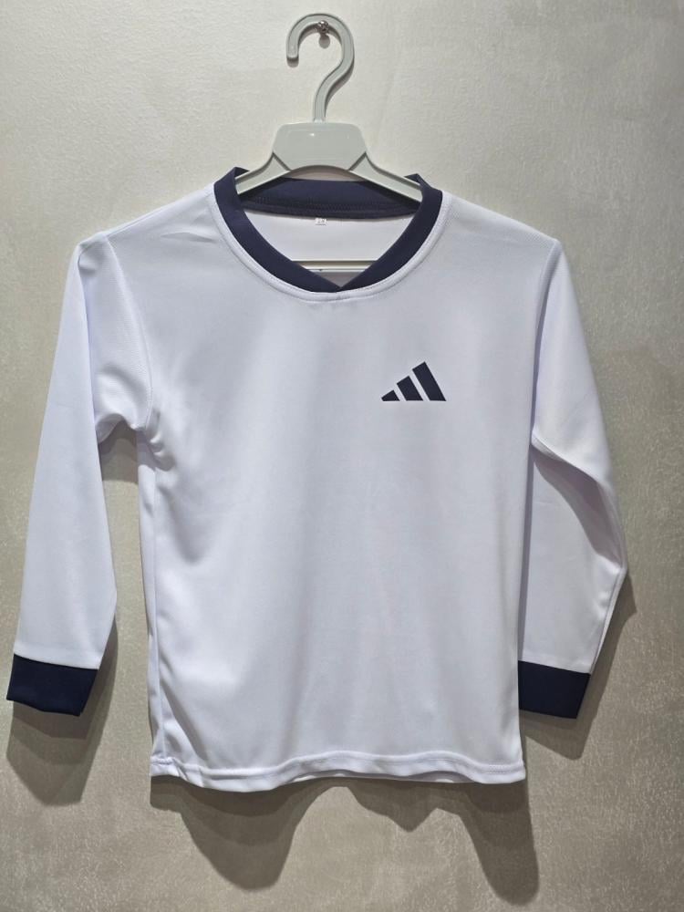 تيشرت اديداس ابيض كحلي كم طويل شبابي