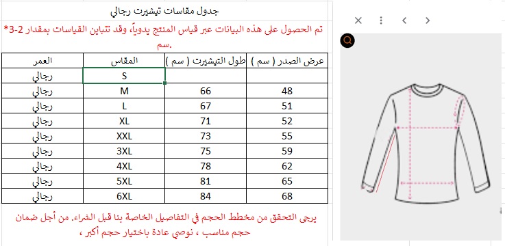 موجود جدول المقاسات في الوصف