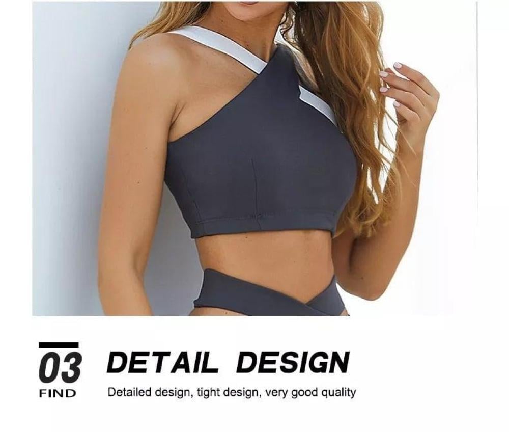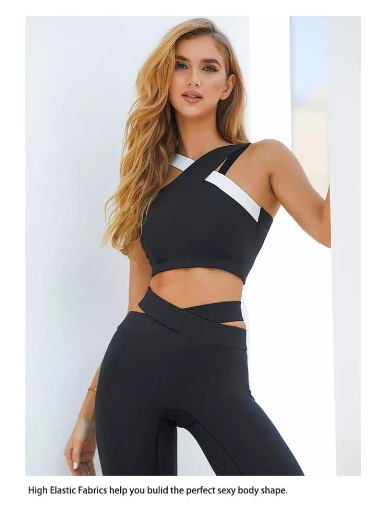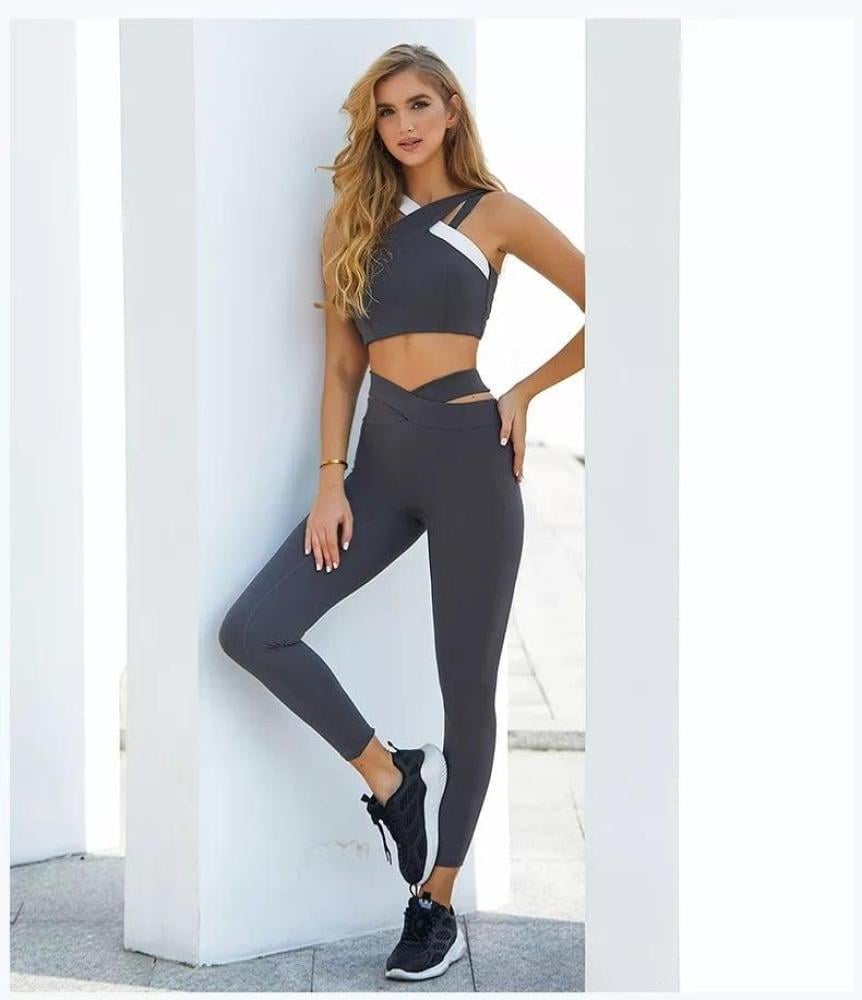 لإطلاية رياضية انثوية تخطف الأنظار أطلبي هذا الطقم الرياضي المؤلف من قطعتين حمالة صدر تتميز بتصميم متعاكس لإضافة لمسة من الرقة والنعومة للتصميم، وبنطال بطول الكاحل مزود بخصر بشكل حرف V وذلك لتحصلي على إطلالة انثوية جذابة تخطف الأنظار، يمكنك ارتدائه عند ممارسة التمارين الرياضية في المنزل أو النادي أو في المنتجعات الصحية والرياضية.