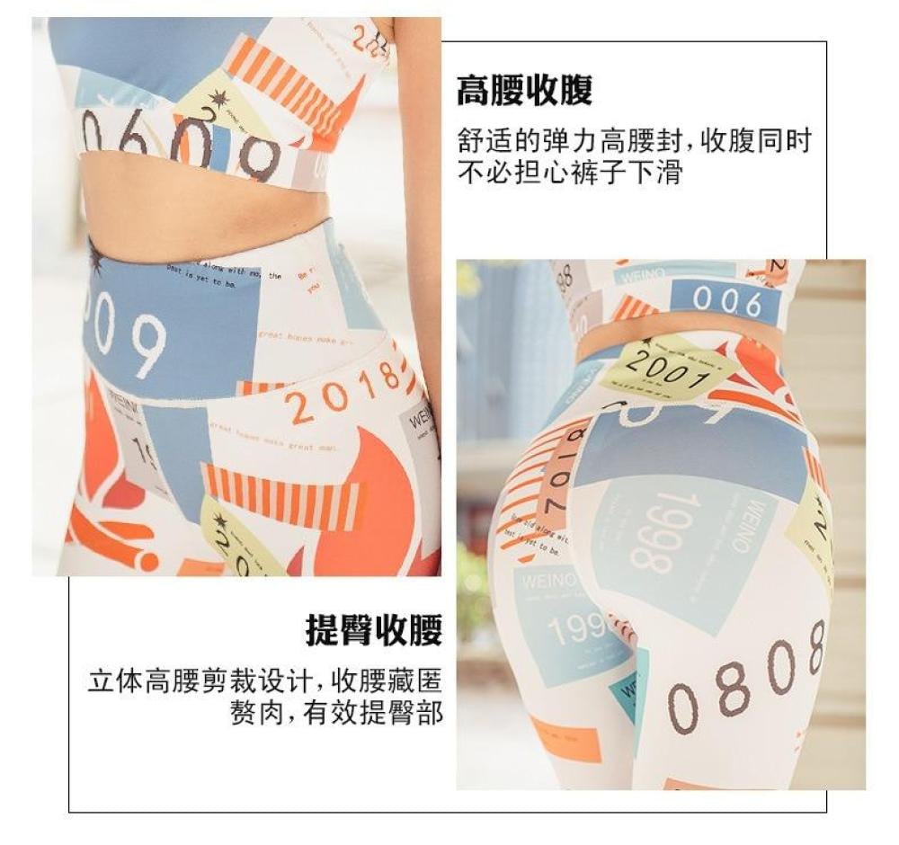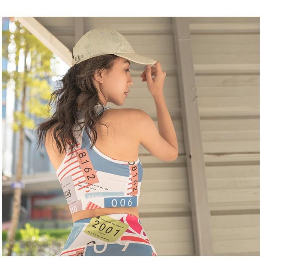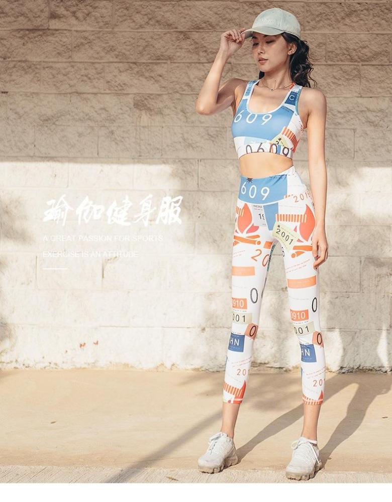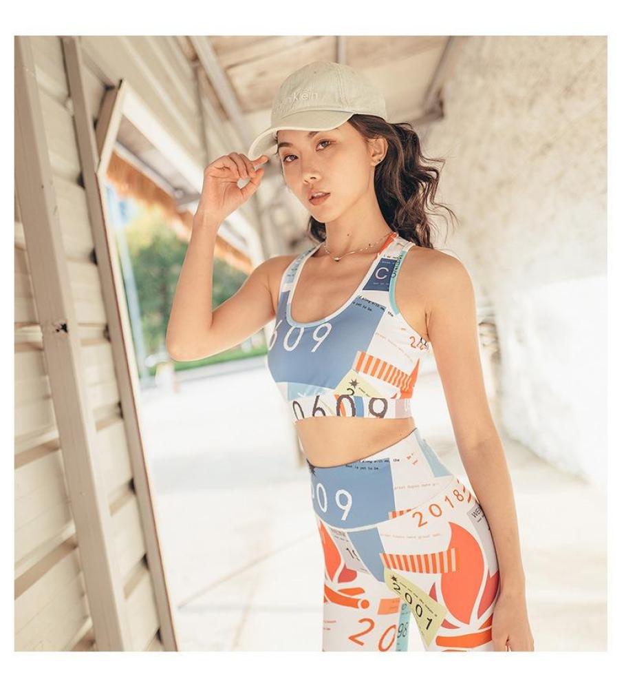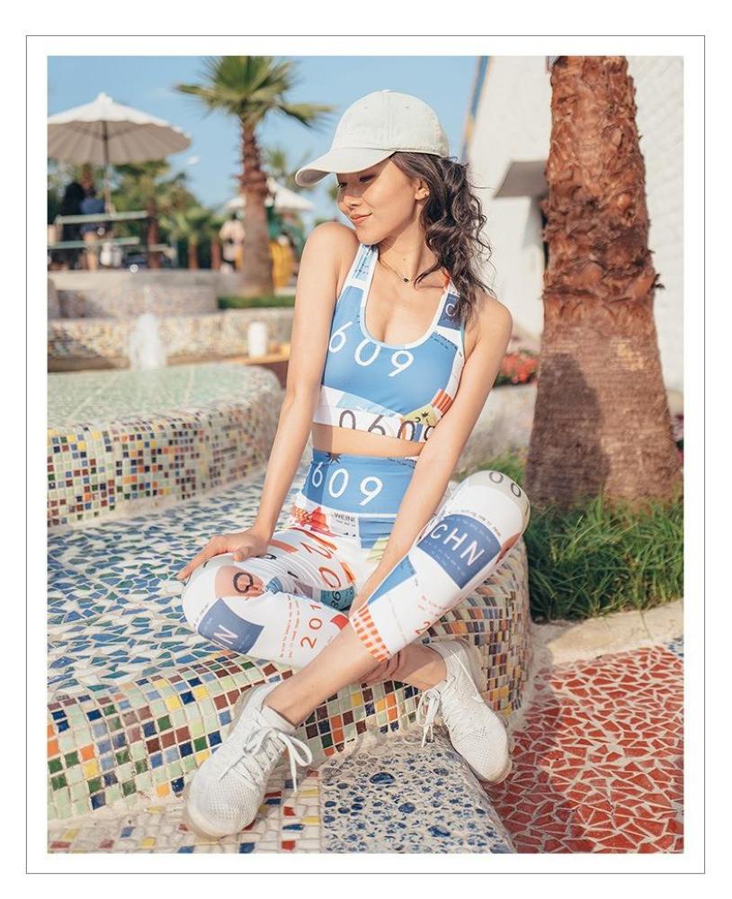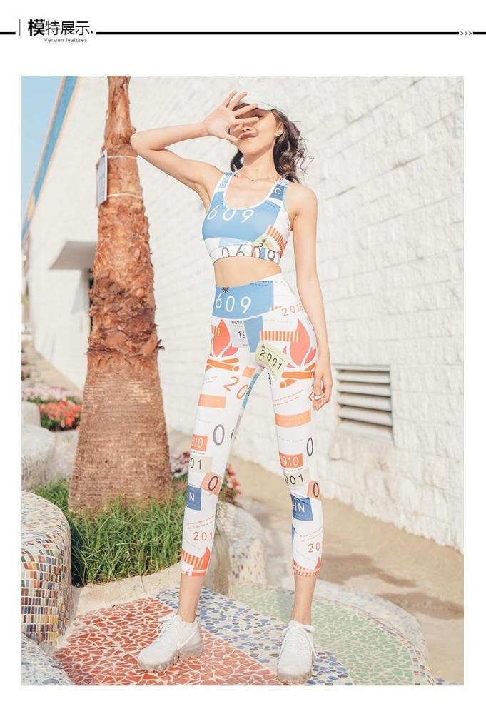 احصلي على إطلالة عصرية تخطف الأنظار مع هذه الملابس الرياضية المزينة بتصميم مطبوع بألوان متباينة لإضافة لمسة من التميز والعصرية للتصميم والمصنوعة من أجود الخامات لتحصلي على أعلى مستوى من الراحة أثناء ممارسة التمارين الرياضية، يتألف هذا الطقم الرياضي من حمالة صدر وبنطال بطول الكاحل مصمم بخصر عالي ومزود بحزام خصر عريض.